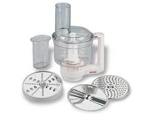 Designed to fit all Bosch stand mixer/kitchen machines whose model numbers begin with MUM 4, this continuous shredder consists of three stainless-steel disks, a lid with a funnel for the machines' bowls, a food pusher, and a safety coupler for the machine that ensures the disks rotate only when the lid is closed. (The shredder has no motor and cannot operate independently of the Bosch machines.) One reversible disk cuts cucumbers, cabbage, potatoes, and other vegetables into thick or thin slices. Another reversible disk shreds carrots, celery, radishes, and other vegetables either coarse or fine. The third disk grates cheese, chocolate, nuts, and potatoes to a medium consistency. All parts are dishwasher-safe. Available separately are a coarse-grating disk and a french-fry disk. --Fred Brack The Continuous Slicer/Shredder comes with three disks: medium grater disc, two reversible shredding and slicing discs. This shredder is for continuous operation with no limitation to the amount that you can process. For use ONLY with the Bosch Compact Series Kitchen machine..
